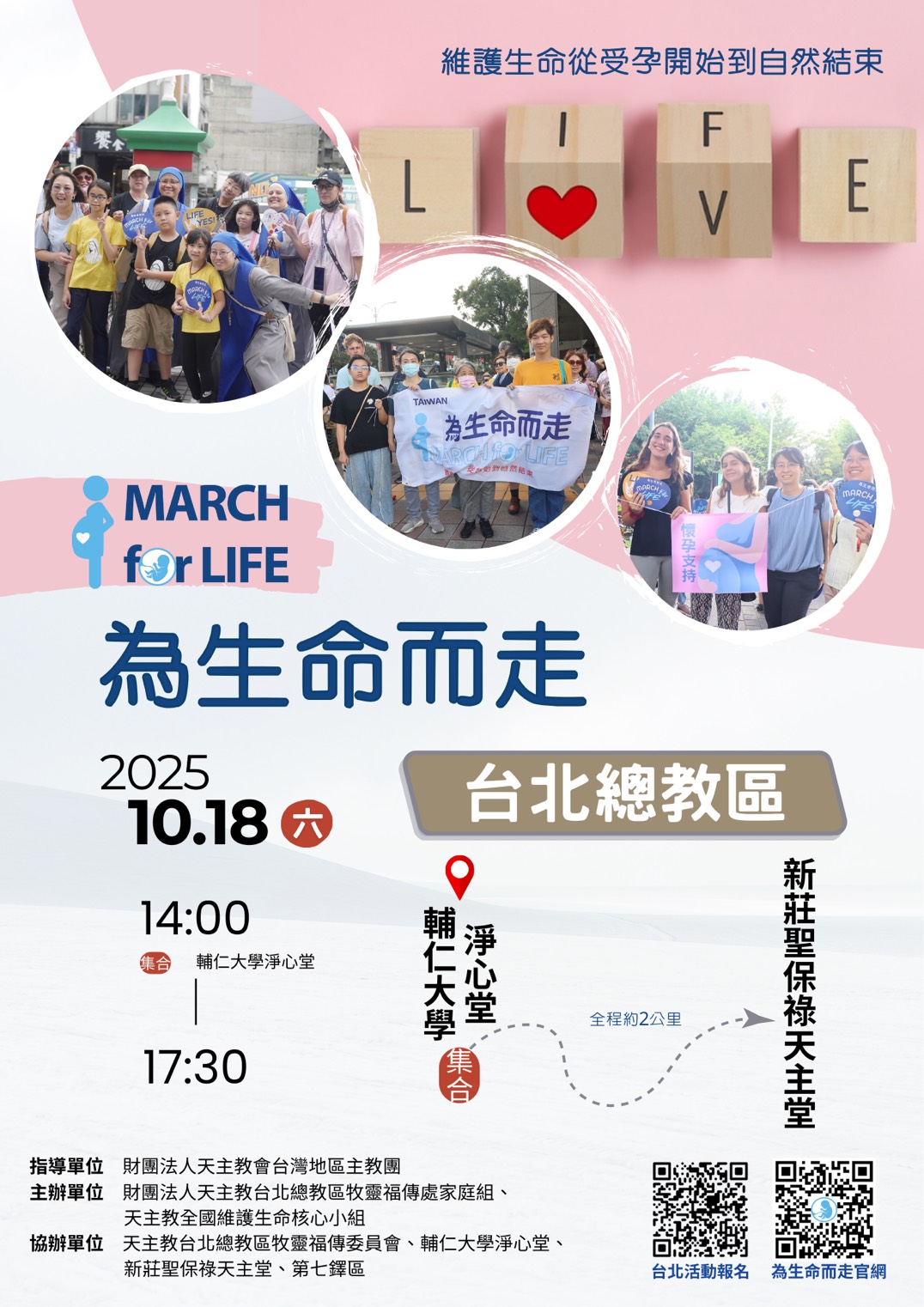 ②. 10月18日(六)下午2:00-5:30台北總教區舉辦為生命而走遊行活動,預計從輔仁大學步行到本堂,本活動需以堂區為單位報名,請有意參加者於10/3(五)前至三樓聖堂後方登記報名,或填寫線上表單,或洽會長孫秋蘭姐妹。