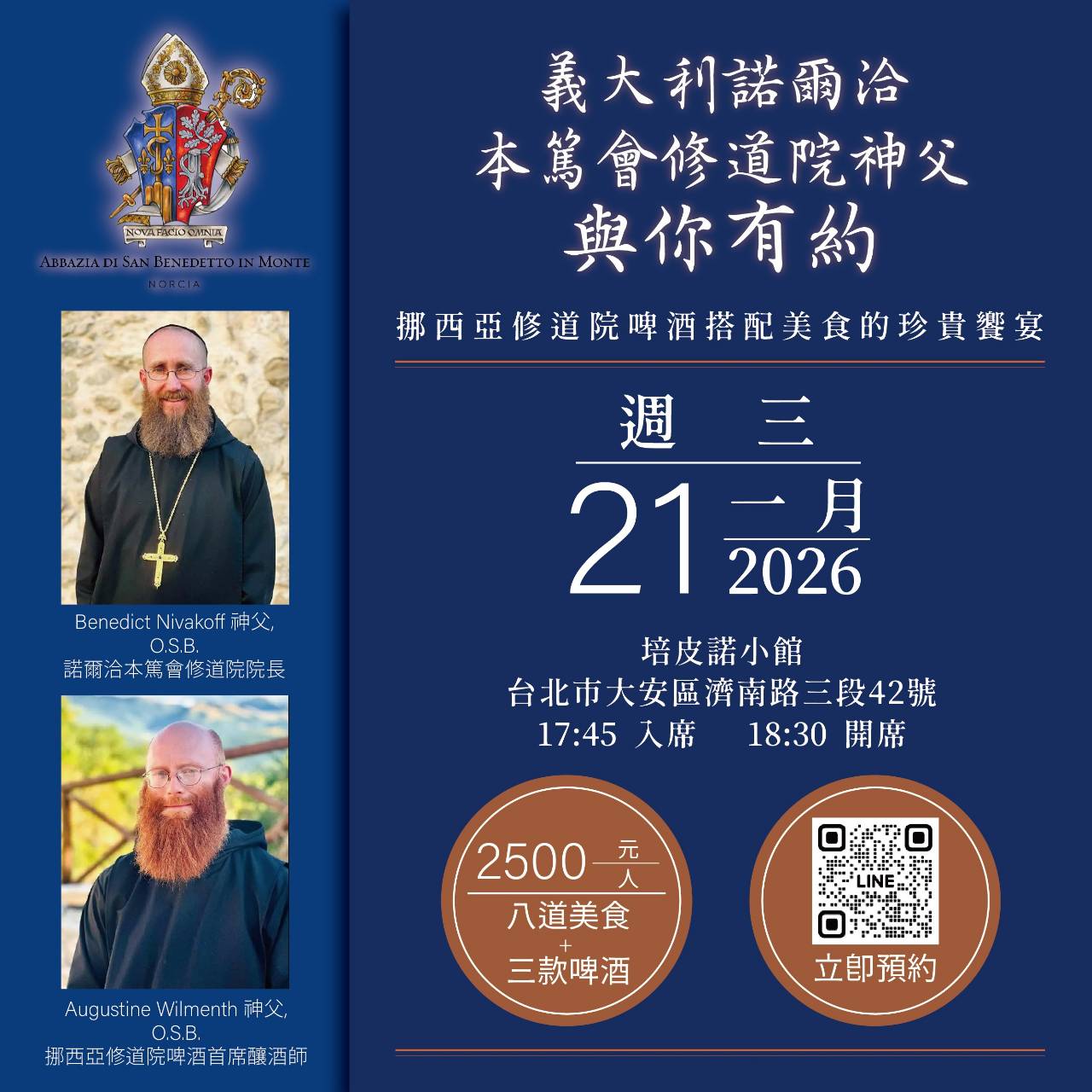 ①. 1月24日(六)及1月25日(日)三台主日彌撒後在一樓川堂有修道院啤酒及葡萄酒販售,歡迎大家選購。